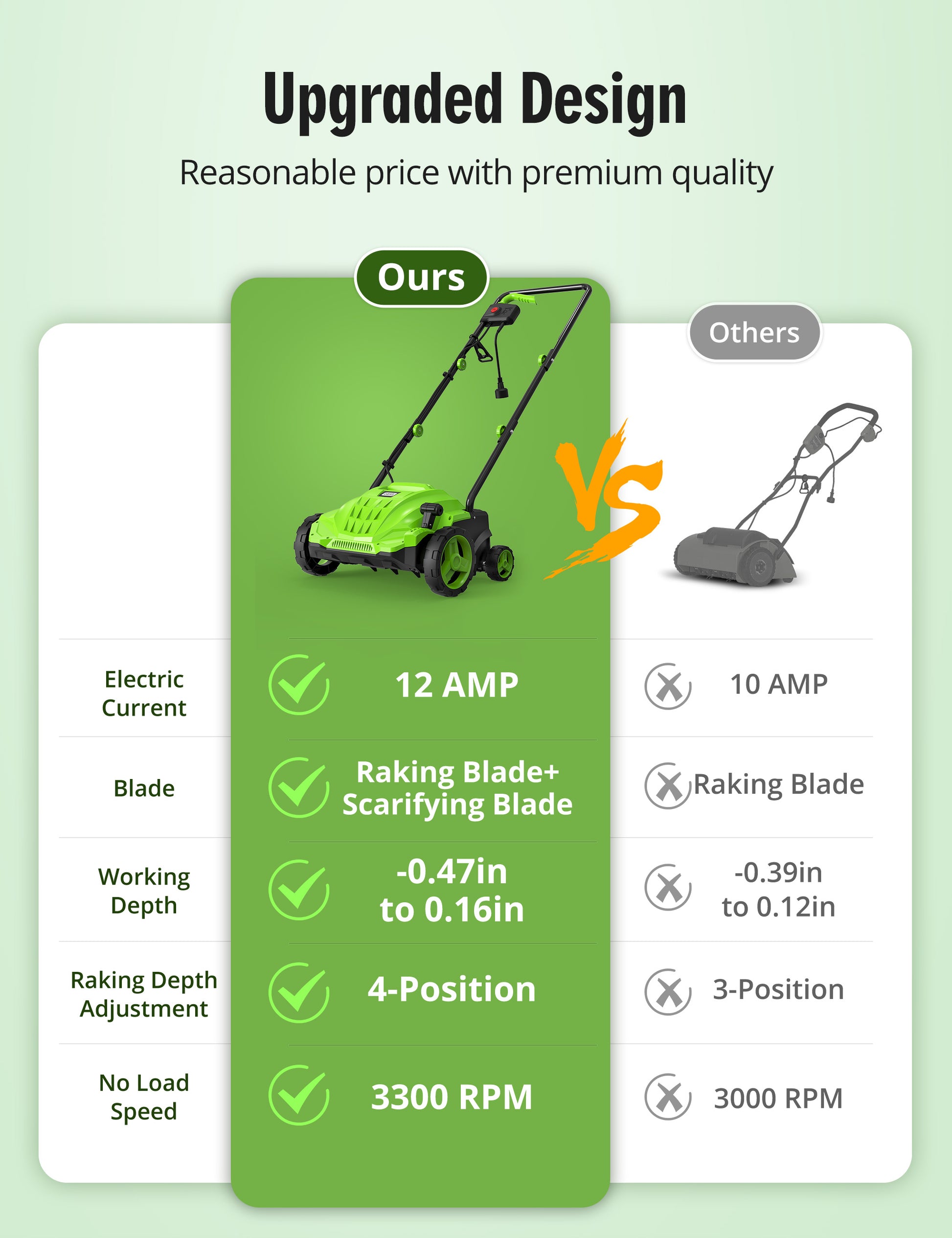 - Powerful Dethatcher: The SWIPESMITH electric dethatcher is an efficient solution for removing debris and dead grass from small to medium lawns. It features a 12 AMP motor that produces speeds of up to 3300RPM, providing high-quality cutting and improved efficiency. The dethatcher has a 14" working path and is not intended to be used as a lawnmower. Please note that this device does not come with a collection bag.
