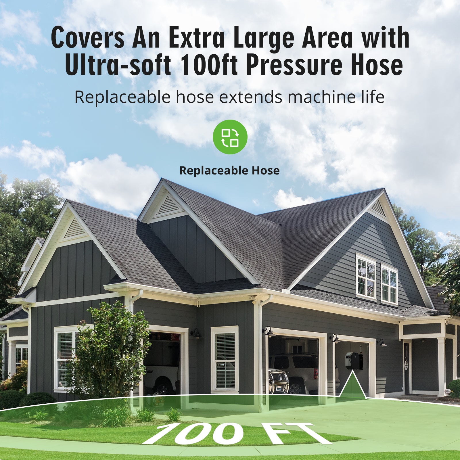 - Robust 100ft Replaceable High-Pressure Hose: The SWIPESMITH pressure washer hose reel covers an impressively wide cleaning zone with a 100ft replaceable high-pressure hose (32°F-104°F). Built from triple-layer composite explosion-proof materials, it is designed to handle even the toughest cleaning jobs. The removable hose is retractable and reusable, minimizing product waste.